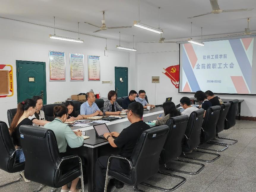 本网讯(通讯员 金垒文/图)为压紧压实责任,确保学院各项工作高质高效推进,4月20日下午,软件工程学院召开全院教职工大会暨2023年度目标责任书签订仪式,学院全体成员参加,会议由院长王敏主持。