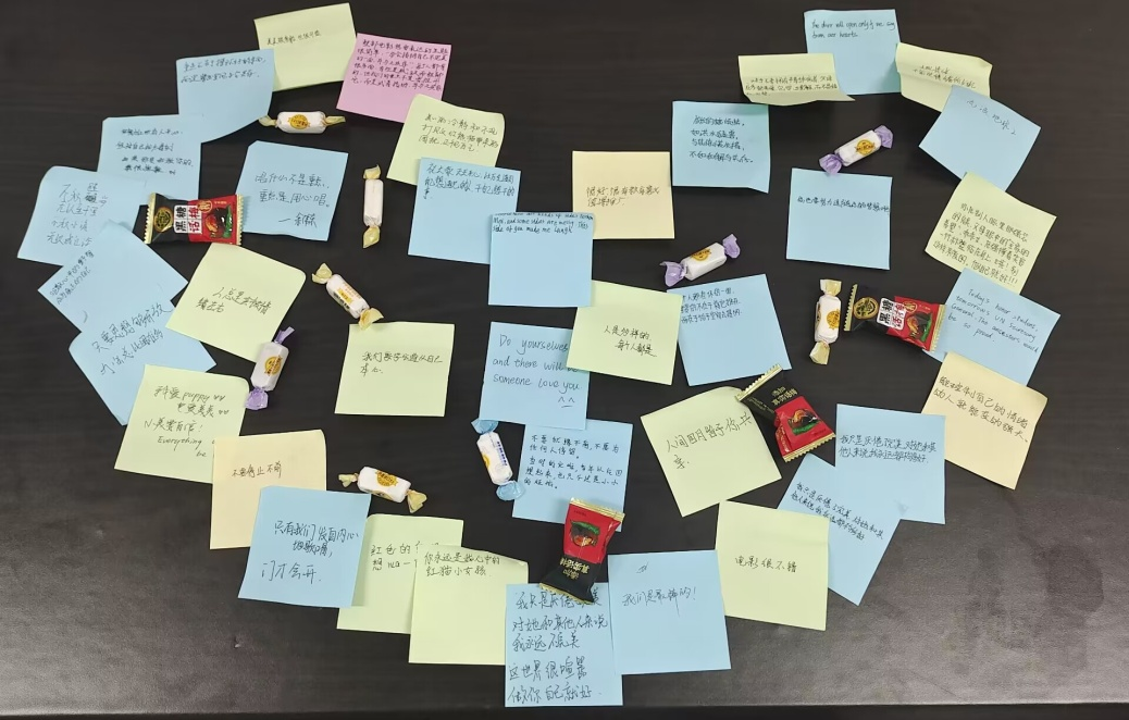 观影过程中,学生们的心情随着电影剧情而跌宕起伏,与影片故事产生了共鸣。大家时而哄堂大笑、时而化身主角如亲临大型社死现场、时而被主角之间流露的亲情所感动。“这是一个很有趣的奇幻故事,也是一段独特的心路历程。”“或许试着接受不完美的自己会更好呢?”“成长的烦恼,如洪水猛兽,与其惊慌失措,不如与他和解……”观影结束后,同学们积极表达了自己对这部电影的想法感受。