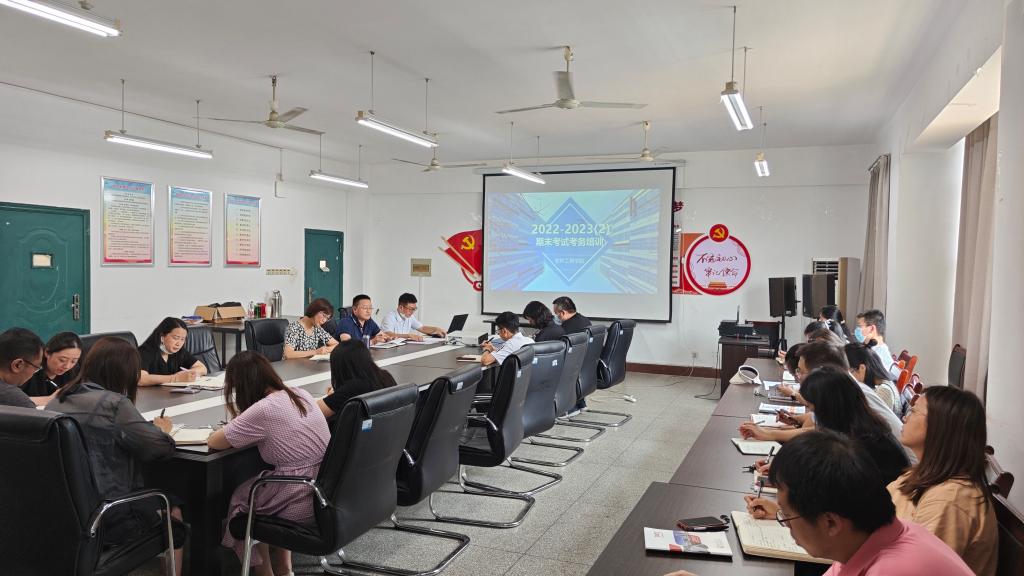 会上,赵海波从考试安排、考场分布、考场布置、监考要求、考生须知、阅卷要求等方面对期末考试工作做了详细的部署安排,对相关要求做出说明。他指出,期末考试工作是学校教学工作的重要环节,应扎实执行考试规定,落实监考责任,严明考风考纪。他提醒各位监考老师务必按时参加监考,严格遵守考务管理制度,认真对待考务工作,不缺席、无差错,确保圆满完成期末考试工作。