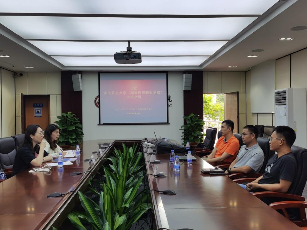 在深圳职业技术学院西丽湖校区,电子与通信工程学院移动互联应用技术专业主任王贤辰、物联网技术专业副主任张胜宇等热情接待了两位专业负责人。王贤辰介绍了学院在国家“双高计划”高水平建设专业方面的情况,详细介绍了移动互联应用技术专业的课程设置、项目化集训的开展情况等;张胜宇介绍了物联网应用技术专业基本情况、课程设置、工业物联网实训室建设情况和就业方向;同时分别就课程如何聚焦岗位核心技术、应用场景模拟等方面进行了经验分享。鲍毅分享了我校物联网应用技术专业将“1+X”证书标准融入人才培养方案,实现高分高通过率的经验;贾露分享了移动应用开发专业通过“岗课赛证”融通提升人才培养质量,连续多年保持高就业率的具体做法。最后双方表示今后将加强交流合作,共同促进专业建设和发展。