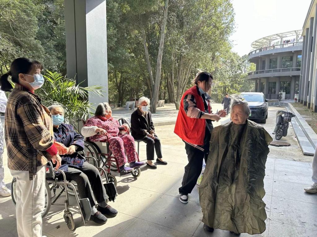 针对老人们在精神生活上的特殊需求,克勤志愿服务队的志愿者们在前期深入了解情况的基础上,做好了充分准备。在益智活动中,志愿者们用自己所擅长的专业技术讲解绘画的技巧,用幽默有趣的方式给老人们普及绘画工具和方法等知识,从折纸到画线条,在志愿者们手把手演示和大家热情创作下,一幅幅别具风味的作品诞生了,看着自己亲手创作的作品,老人们脸上洋溢着开心的笑容。当得知多数老人们剪发不便时,志愿者们发挥所长,为老人“剪去”烦恼,“送去”温暖。在热情询问完老人的需求后,熟练地运用手中的剪刀,边梳边剪,在6个小时里,先后为26位老人提供志愿理发服务。整个过程温馨欢乐,志愿者们细致认真的态度也获得了老人们的一致称赞和感谢。