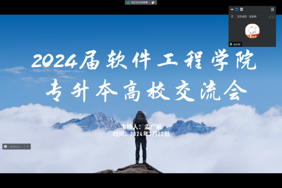 本网讯(通讯员 高苗苗/文 吴豫 严欣然/图)2024年专升本政策变动较大,为精准解读政策,平稳考生心态,3月22日晚,软件工程学院通过腾讯会议举办专升本高校交流会,湖北汽车工业学院等6所本科院校受邀参加,2024届各专业近300名学生参加了本次交流会。