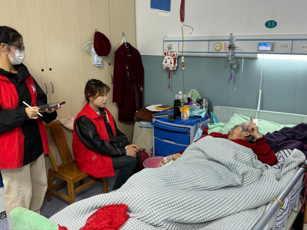 武汉市老年病医院的大部分患者为长寿老人、无陪护老人,他们中多数常年卧床且数病共存,长期的医院治疗也让他们内心空虚、深感孤独。了解到这个情况后,软件工程学院克勤志愿服务队的志愿者们主动来到医院,深入病区和疗养地,与老人们交流互动。一方面,老人向志愿者们分享属于自己的“光阴的故事”,讲述红色历史,让年轻的志愿者们生动体会到了祖国的变迁与发展;另一方面,志愿者们也向老人们介绍了一些新的事物,教他们如何使用智能手机,如何使用微信通话,如何使用互联网......老人们说,虽然他们上了年纪,但是依然有一颗积极的心态和学习的欲望,与年轻人的互动,也让他们看到了年轻人朝气蓬勃,感受到了国家未来的希望。