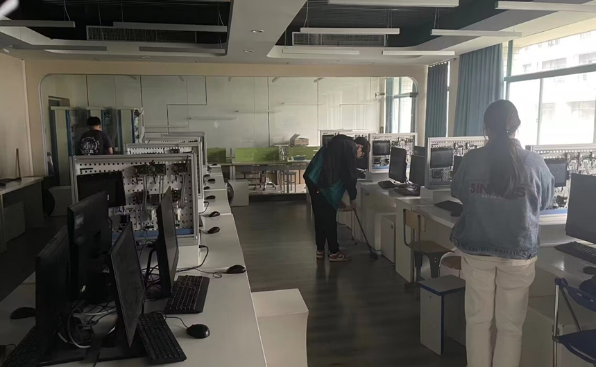5月10日至11日,学院开展了为期两天的“以劳强体校园清扫”活动,对学院5602等10间实训室进行了深度清洁,学院共40余名志愿者主动报名参加。活动开始前,学院青年志愿者协会工作人员对到场志愿者进行小组分工并讲解清扫注意事项。活动开始后,志愿者分成5个小组有序进入实训室打扫卫生,同学们态度认真、工作细致,抹桌子、扫地、拖地、清理卫生死角,实训室在同学们的劳动中焕然一新。同学们在实践中认识到了注重校园环境、保持教室整洁,爱惜专业设备的重要性。